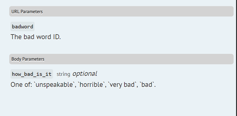 <h4 class="fancy-heading-panel"><b>Body Parameters</b></h4>